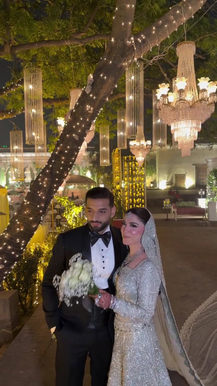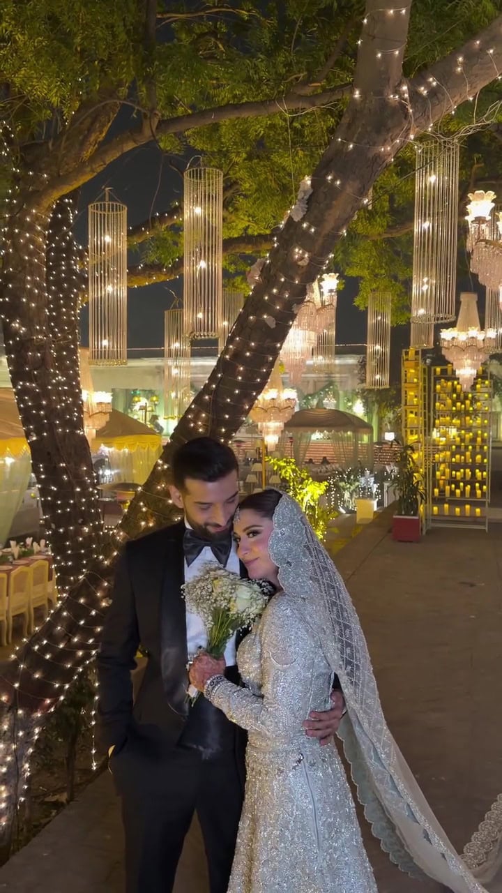 اس ویڈیو میں حنا نیازی چاندی کی رنگت والا خوبصورت لباس پہنے اپنے شوہر کے ساتھ پوز دیتی نظر آرہی ہیں۔